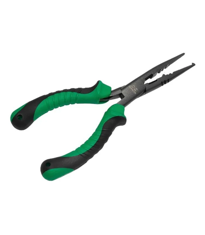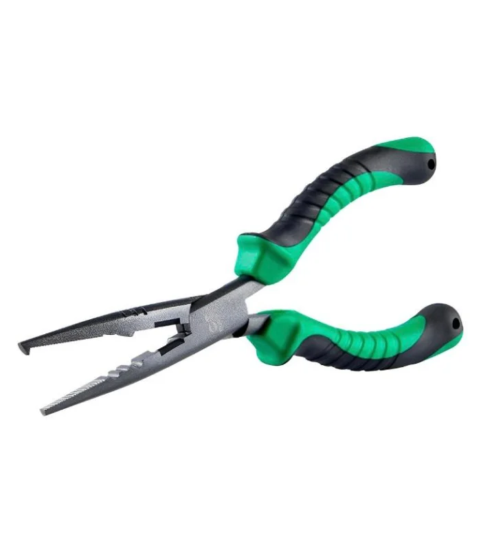 Possui várias funções úteis para a pesca esportiva, como bico com maior aderência a linha, cortador de linhas, cabo emborrachado facilitando o uso e dando maior aderencia e segurança, bico especial para abrir argolas para troca de garatéias e frisos para apertar o chumbos e luvas de empate.